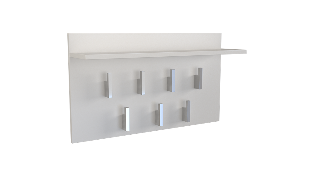 Ontdek de praktische witte klerenhanger met plank, model 2F, ideaal voor in de hal of entree. Deze moderne garderobe biedt voldoende ruimte dankzij de geïntegreerde plank en maar liefst 7 stevige haken, perfect voor het ophangen van jassen, tassen en accessoires. Het meubel is vervaardigd uit 16 mm dikke gelamineerde spaanplaat en de randen zijn voorzien van duurzaam ABS-kunststof, wat zorgt voor een lange levensduur en hoge bestendigheid tegen krassen en stoten.