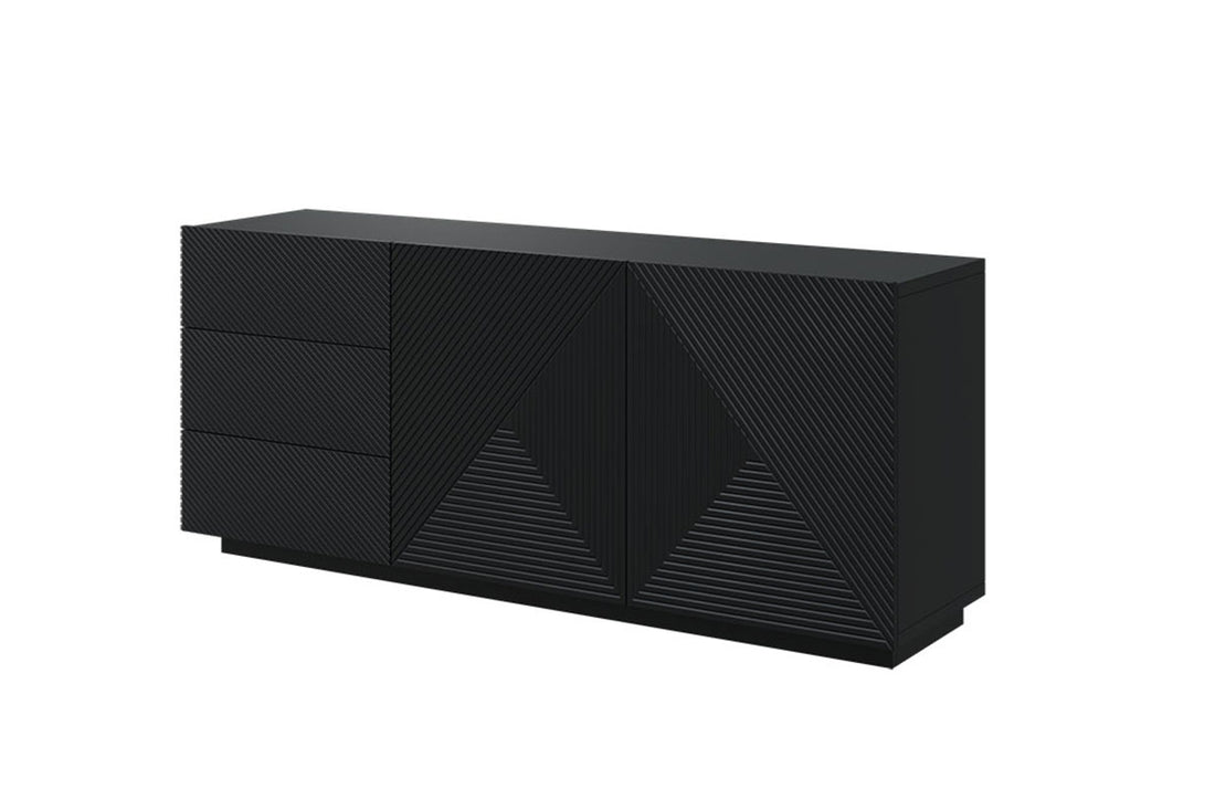Asha ladekast 167 cm met 3 lades en gegroefd front | Kleur: Mat zwart | Maat: 167x71x43 cm