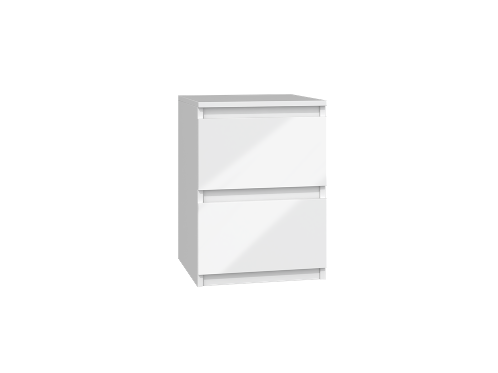 Modern Nachtkastje Malwa M2 met 2 Lades - Mat & Glanzend Wit | Kleur: Wit | Maat: 30x30x40 cm