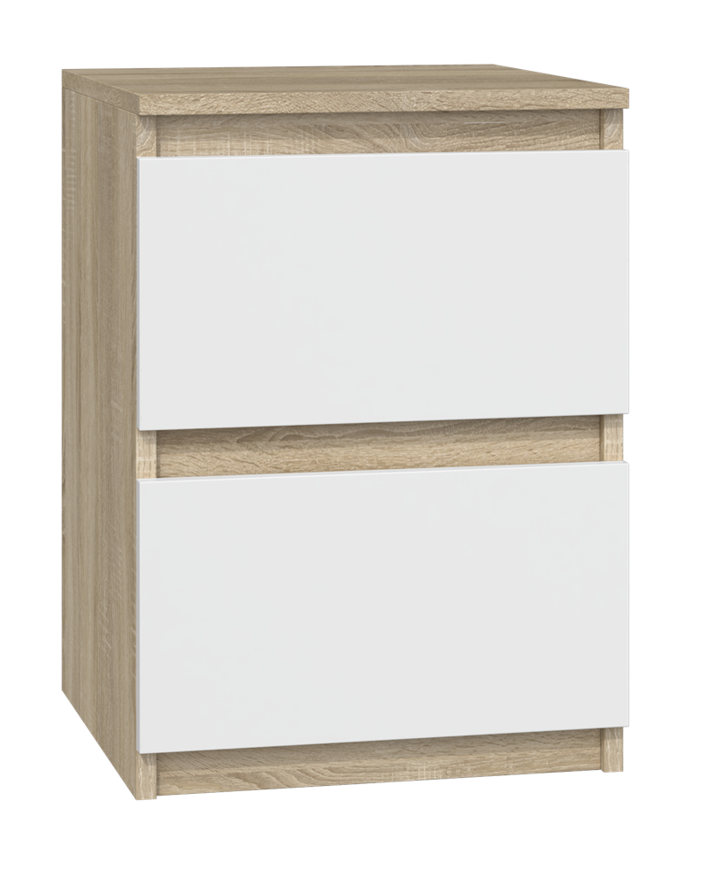 Modern Nachtkastje MALWA M2 met 2 lades - Compact Opbergmeubel | Kleur: Sonoma/Wit | Maat: 30x30x40