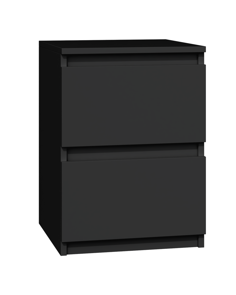 Modern Nachtkastje MALWA M2 met 2 Greeploze Lades | Kleur: Zwart | Maat: 30x30x40 cm