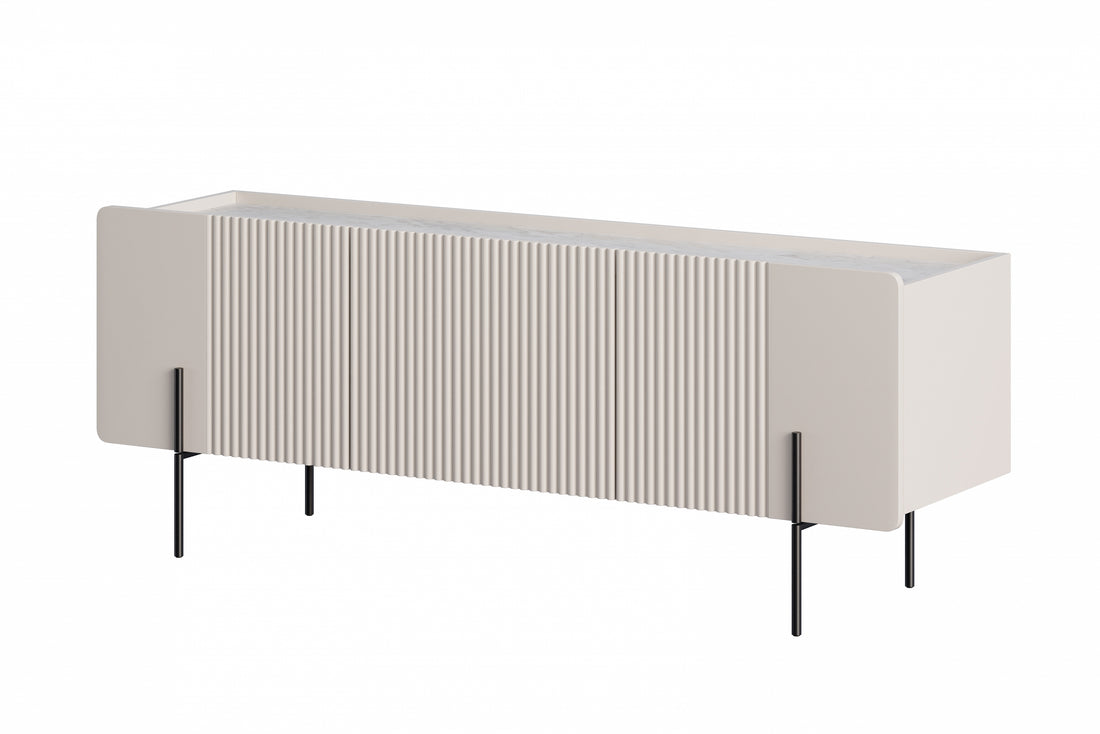 Asha TV-meubel 200 cm met geribbeld MDF en zwart metalen frame | Kleur: Kasjmier | Maat: 200x56x40