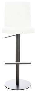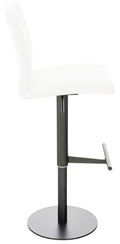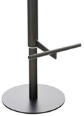 Denna uppsättning av två eleganta barstolar utstrålar en inbjudande atmosfär. De stoppade stolarna har ryggstöd och fotstöd för optimal sittkomfort. Båda pallarna är höjdjusterbara med gasfjäder och erbjuder en 360° vridfunktion. Det integrerade fotstödet justeras samtidigt till förändringar i sitthöjden. Designen kompletteras av en stomme i mattsvart eller borstat rostfritt stål, vilket säkerställer stabilitet och skyddar golvet från repor och skador.