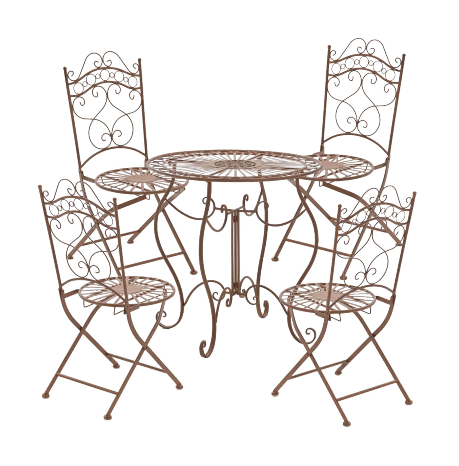Dessa nostalgiskt designade stolar är riktiga blickfång för alla uteplatser eller trädgårdar. De utmärker sig genom sina graciösa former och de kärleksfullt handgjorda detaljerna i ornamenten. Perfekta för att ge din trädgård en speciell touch, de förhöjer din favoritplats med en touch av svunnen charm. Produkten är handgjord av järn och därför mycket stabil. Ytan har en handgjord antik patinafinish. Denna modell är helt ny och matchar perfekt alla metallbord i vår butik.