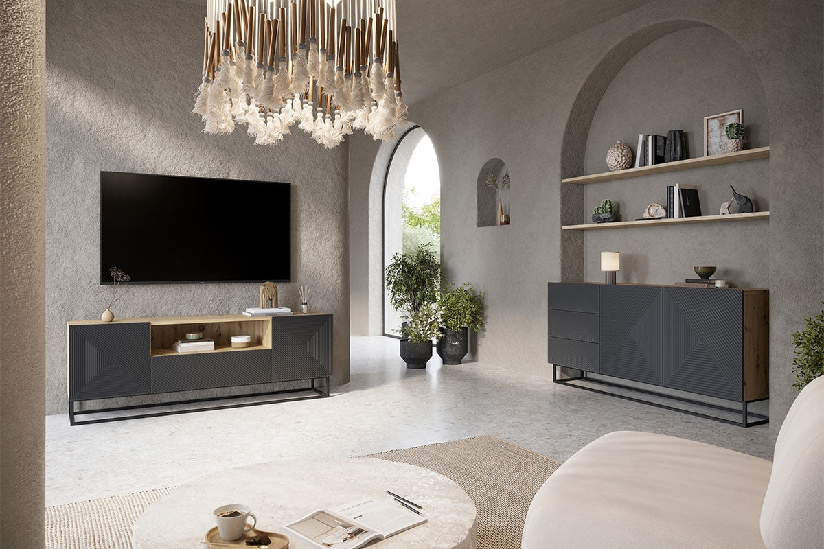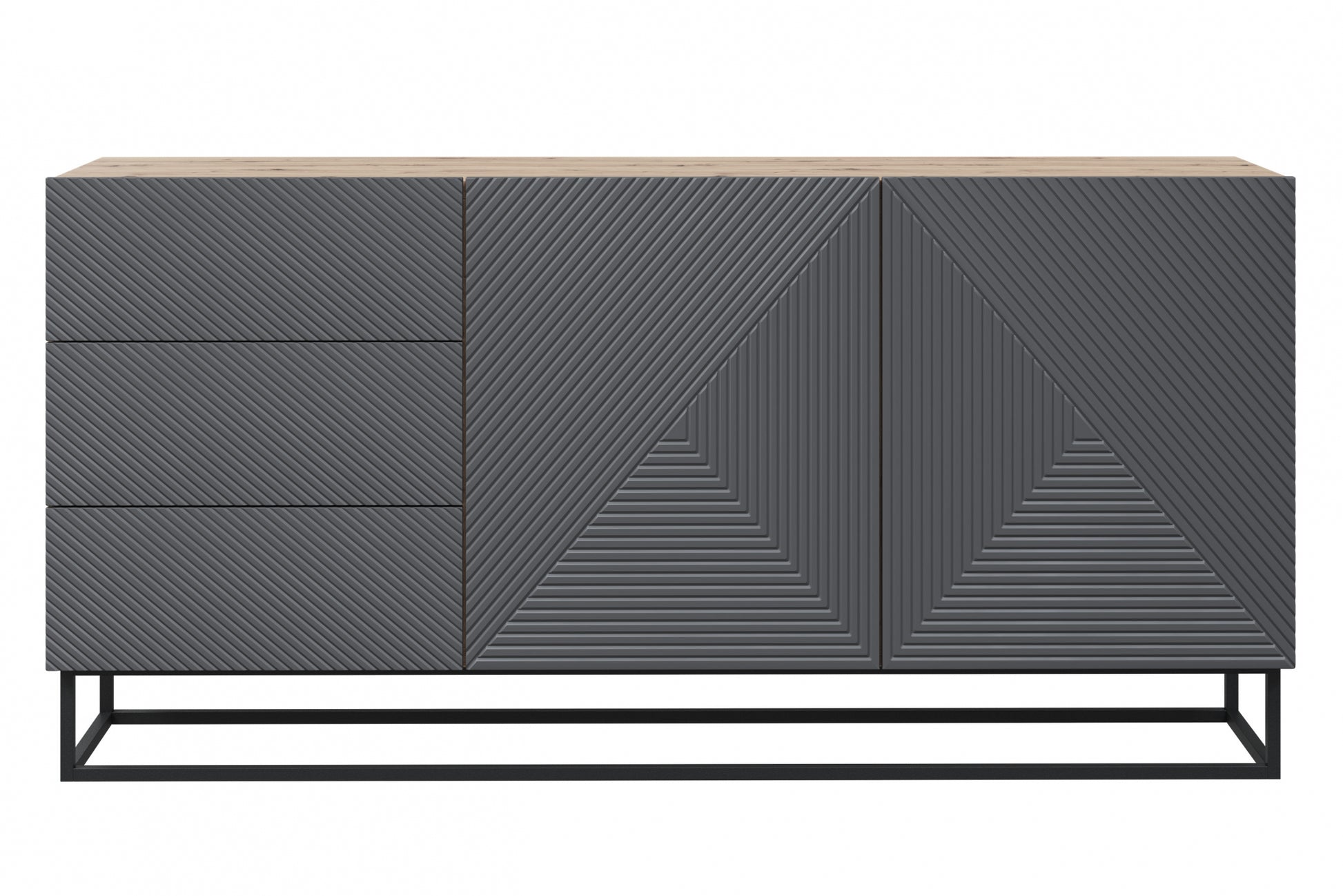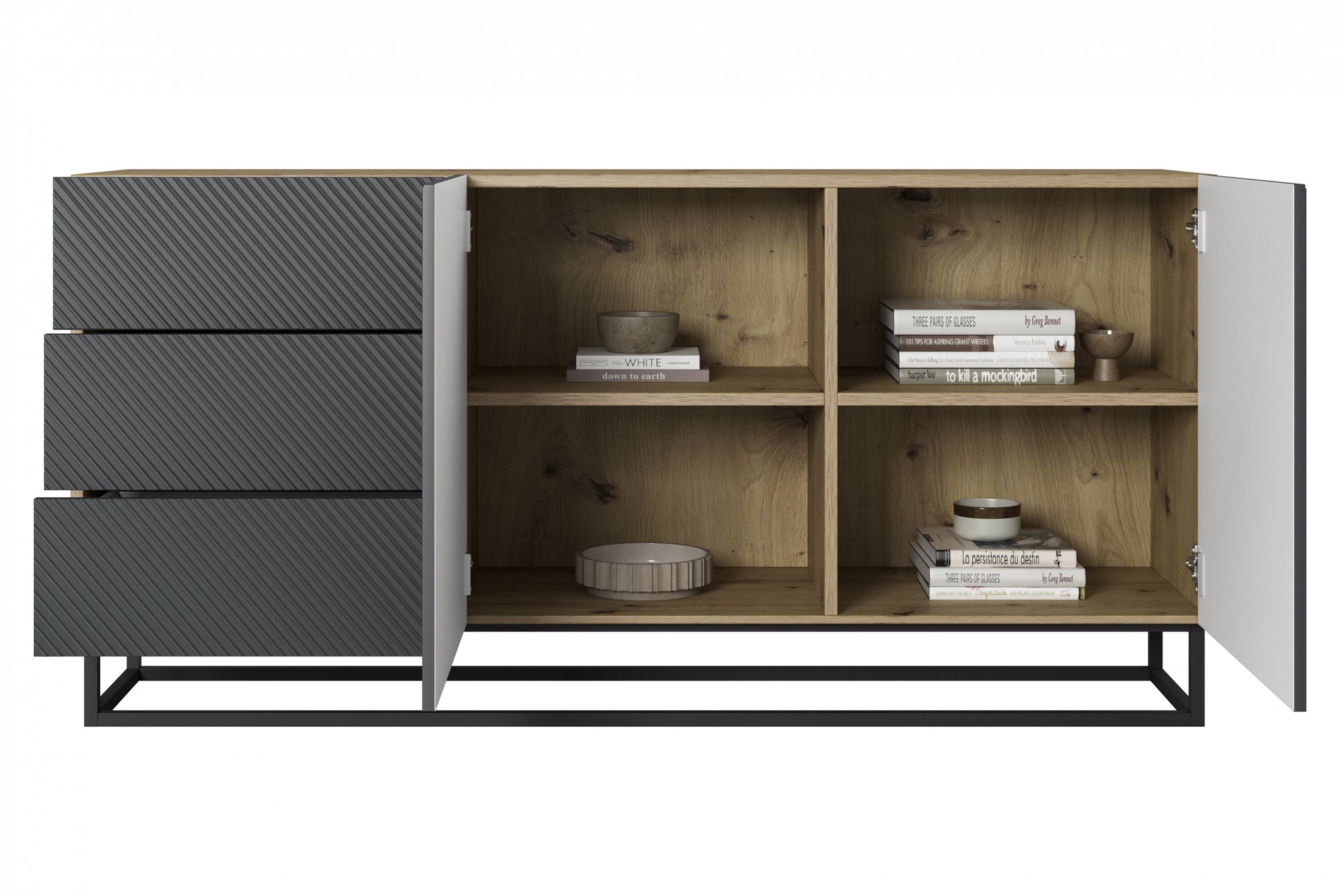 Asha ladekast 167 cm - Artisan eiken en rivier steenmat, 3 lades, push-to-open | Kleur: Artisan