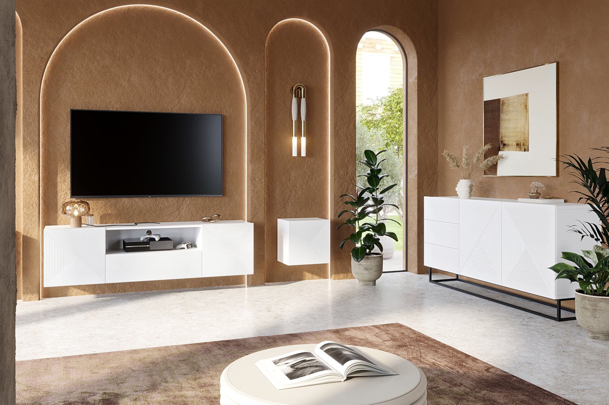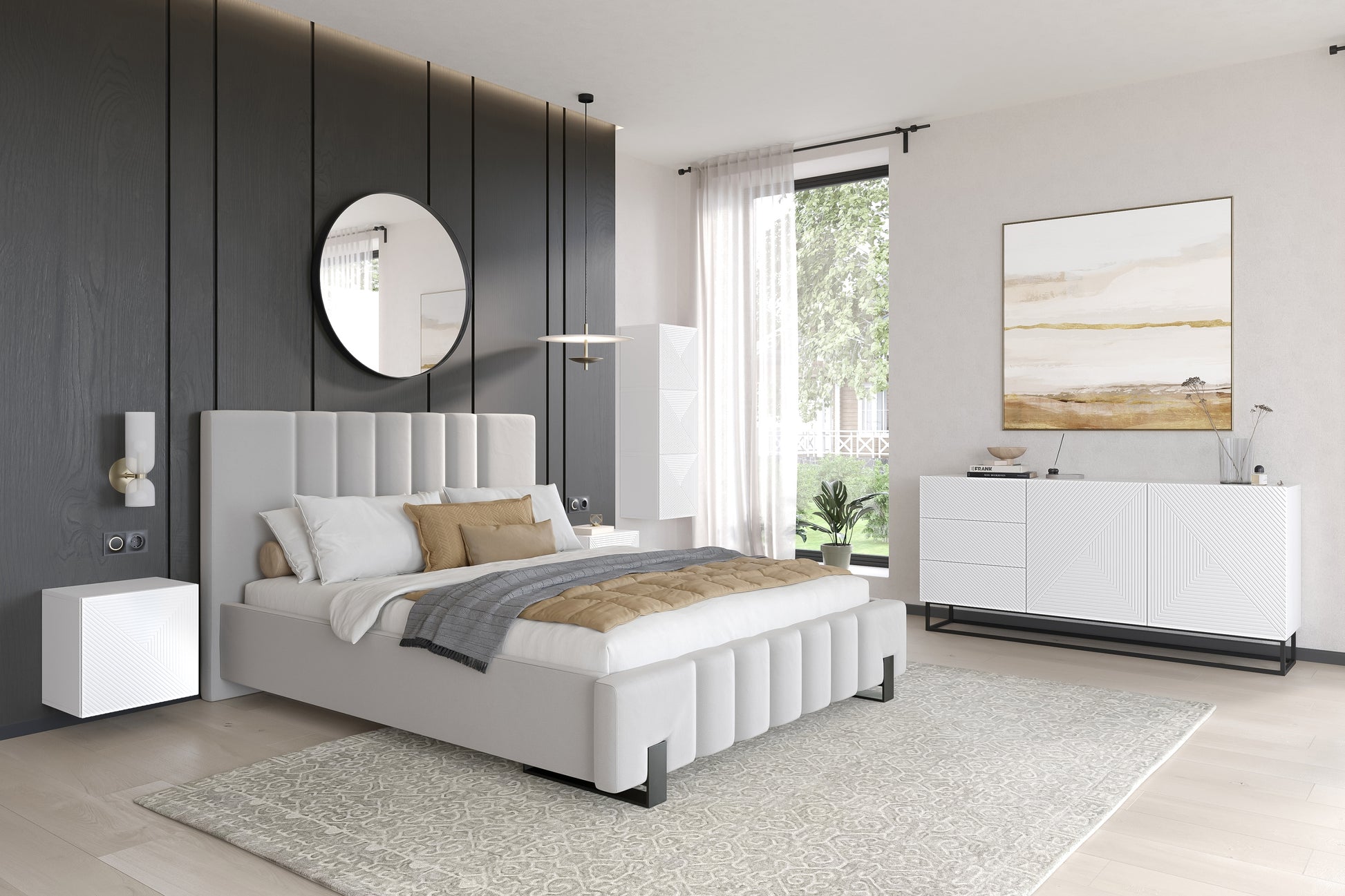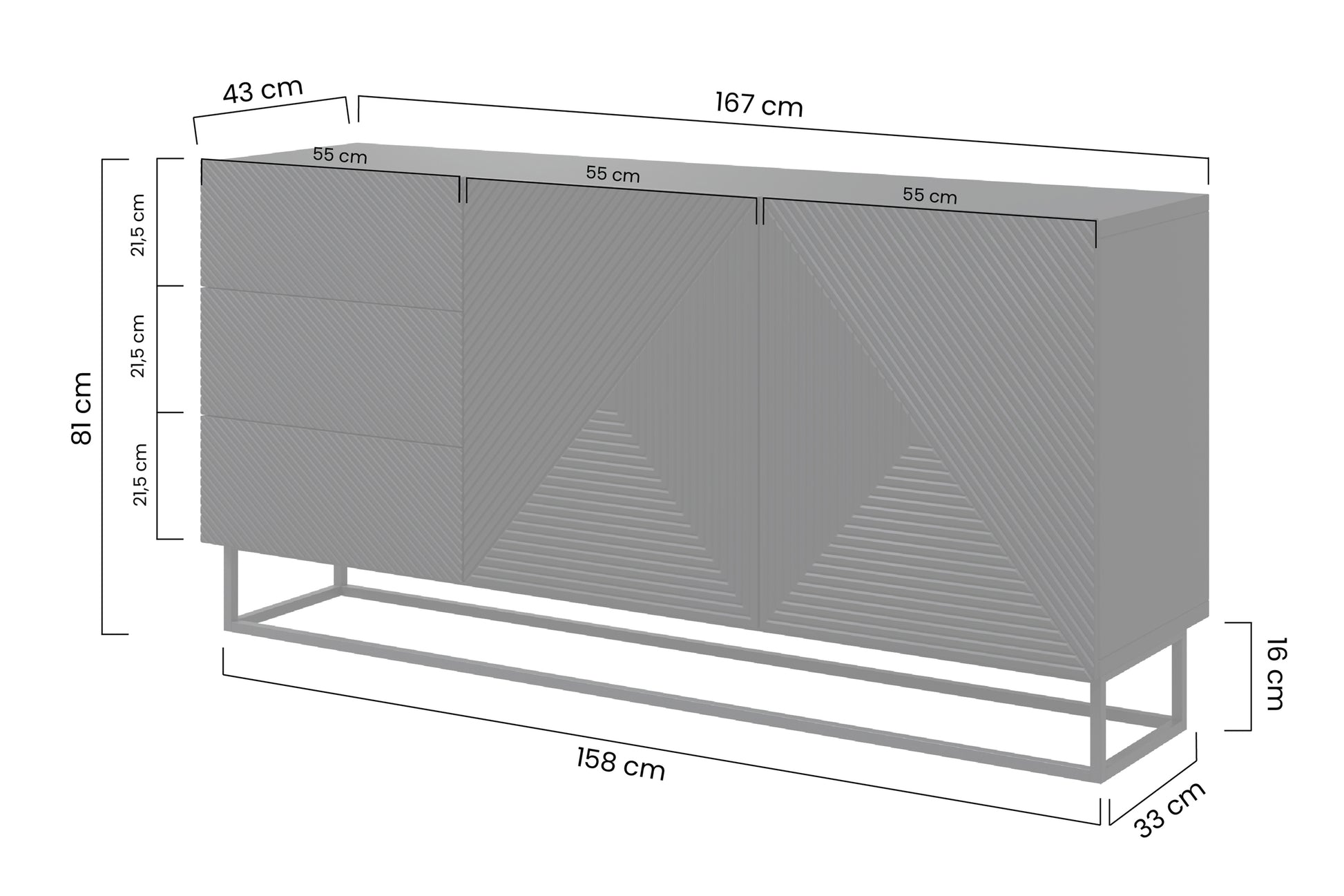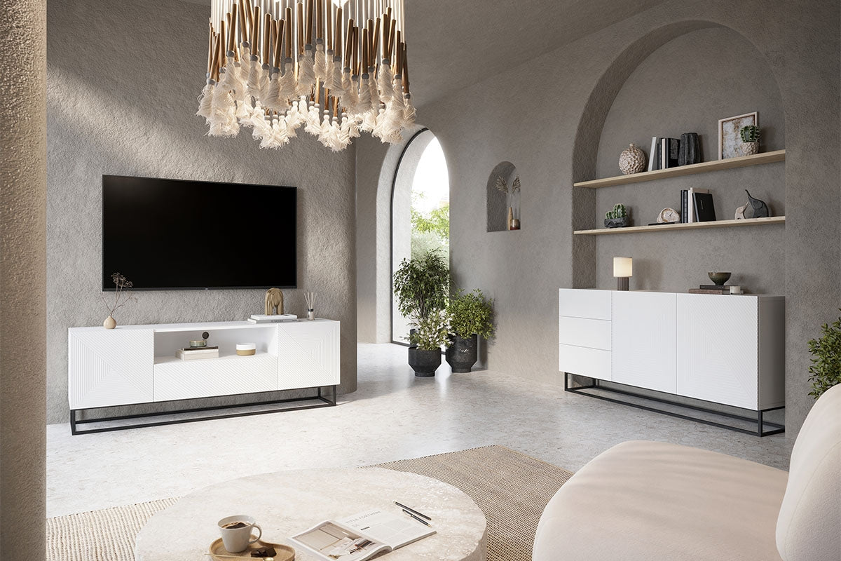 Asha ladekast 167 cm breed - Mat wit met zwarte metalen poten | Kleur: Mat wit | Maat: 167x81x43 cm