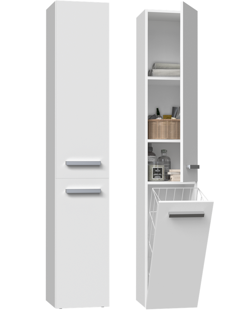 Badkamerkast NEL IV - Mat Wit, Lange Deur met Mand | Kleur: Mat Wit | Maat: 174x31x30 cm