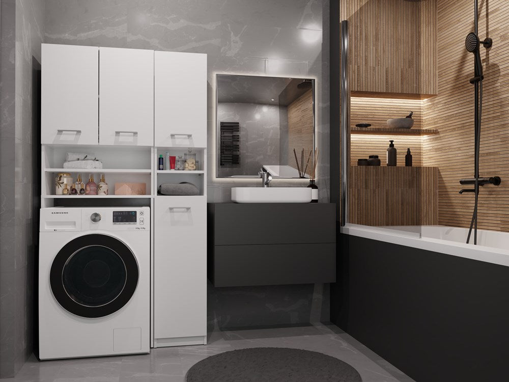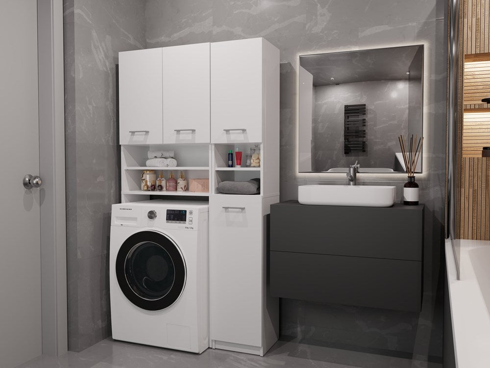 Badkamerset Marpol - Marbella postbord & Pola wasmachinekast | Kleur: Mat wit | Maat: 96x30x180 cm