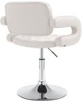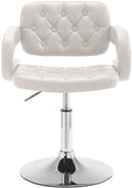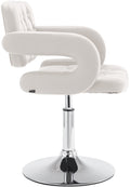 Denna fåtölj erbjuder bekväma och eleganta sittplatser för vardagsbruk, perfekt för moderna utrymmen. Den stoppade sitsen med konstläderklädsel ger extra komfort, även under längre perioder. Armstöd och ryggstöd bidrar till sittkomforten. Höjdjusterbar och 360° roterbar, erbjuder denna fåtölj exceptionell flexibilitet. Stommen är tillverkad av kromfärgad metall med golvskydd under trumpetbasen för att förhindra repor.