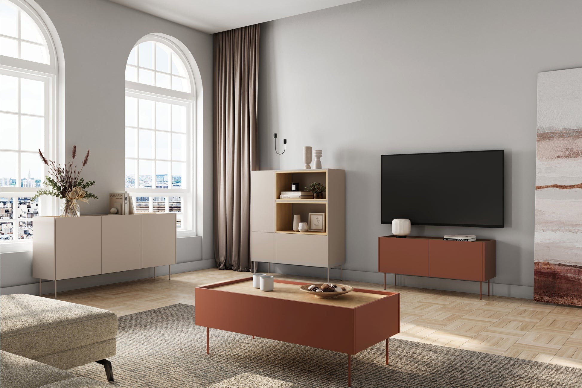 Desin Salontafel 120 cm met Laden - Keramiek Rood / Nagano Eik
