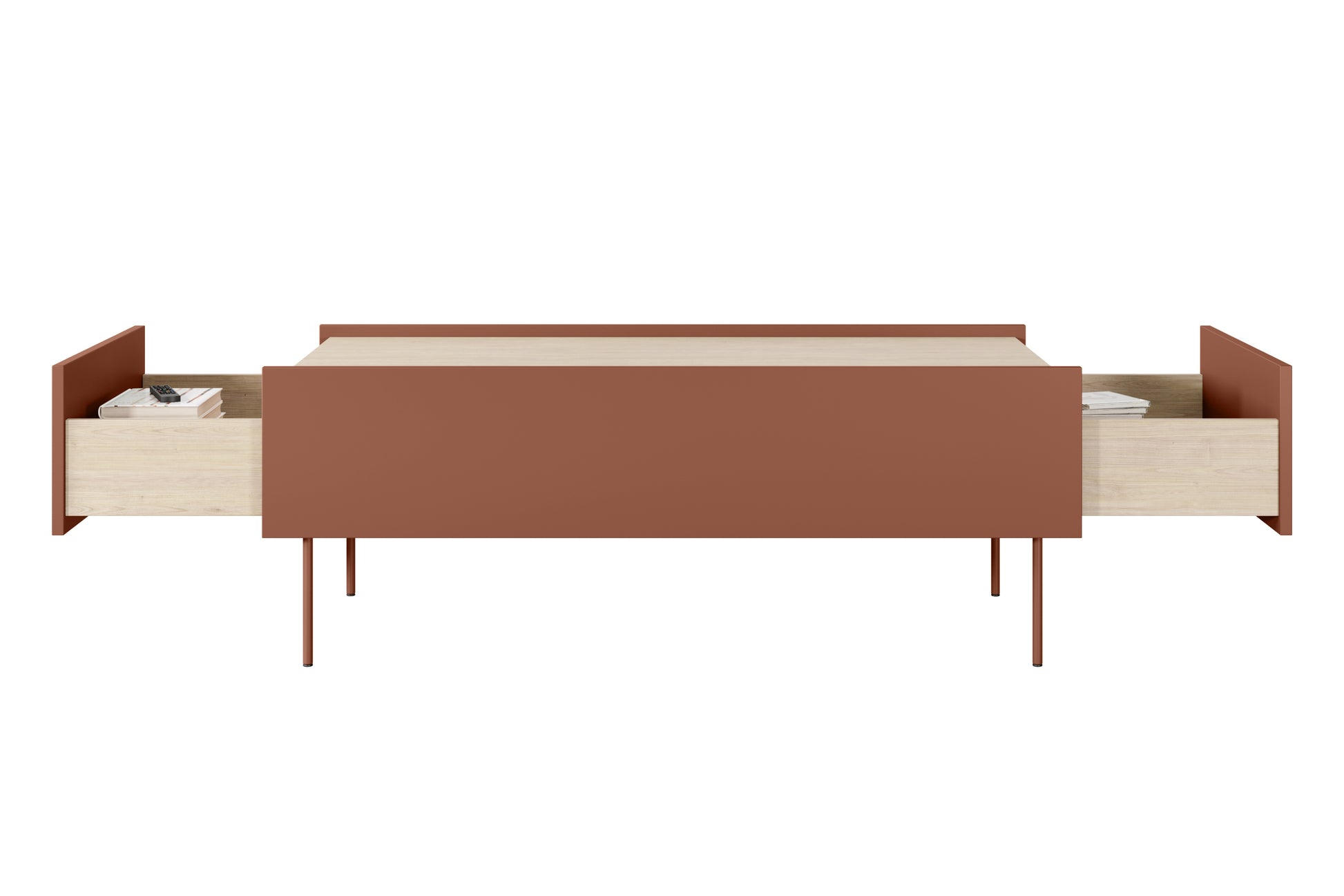 Desin Salontafel met 2 lades - Modern, Scandinavisch ontwerp | Keramiek Rood / Nagano Eik