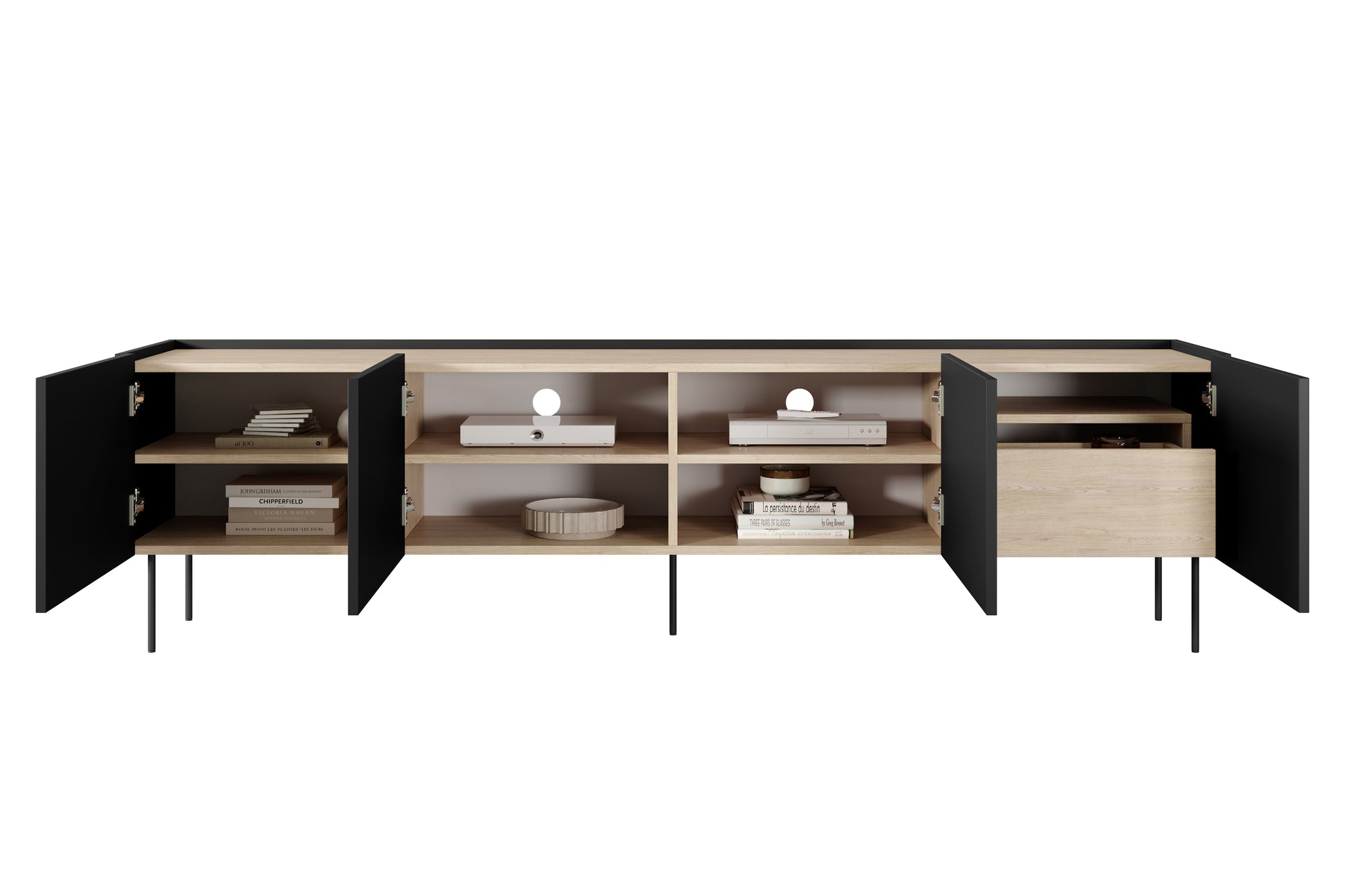 Desin TV-meubel 220 cm met verborgen lade - Mat zwart/Nagano eik | 220x60x40 cm