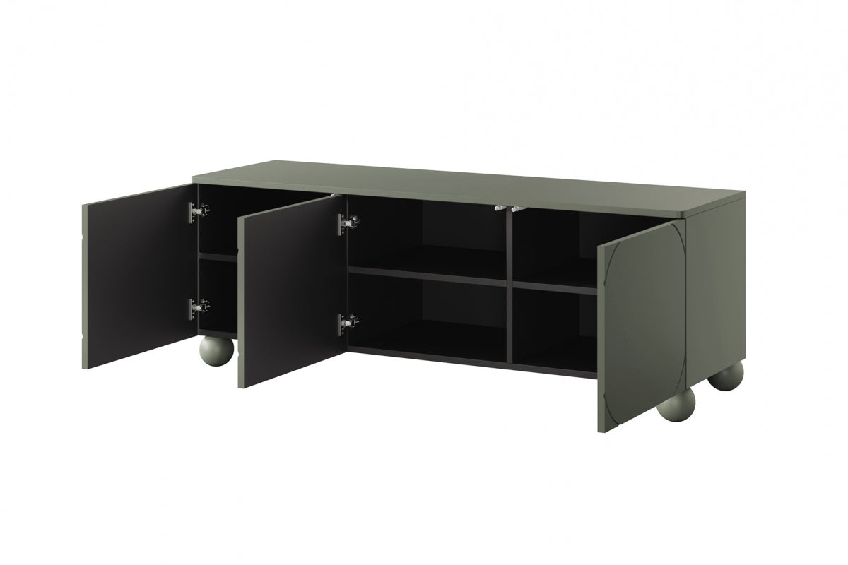 Driedeurs TV-meubel Sonatia II modern MDF op krukpoten | Kleur: Olijfgroen | Maat: 150x57x45 cm