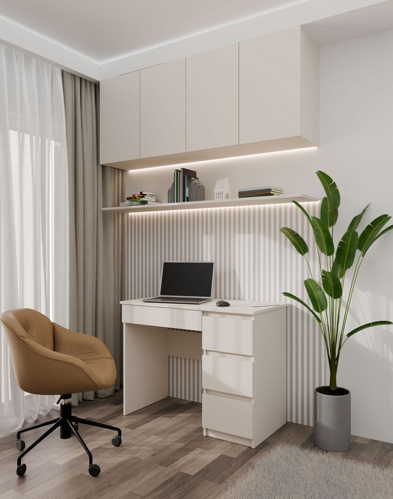 Het bureau Mijas Rechts is een modern en functioneel bureau, uitgevoerd in een exclusieve kasjmier (beige) tint. Dit stijlvolle meubelstuk is ideaal voor zowel thuiskantoren als professionele werkplekken. Dankzij de solide afwerking, gladde zijkanten zonder doppen en het minimalistische design creëer je eenvoudig een comfortabele werkruimte. Vier ruime lades – drie aan de rechterzijde en één aan de linkerzijde – zorgen voor optimale opbergruimte. Het bureau heeft fronten zonder handgrepen en is eenvoudig te monteren dankzij de meegeleverde handleiding.