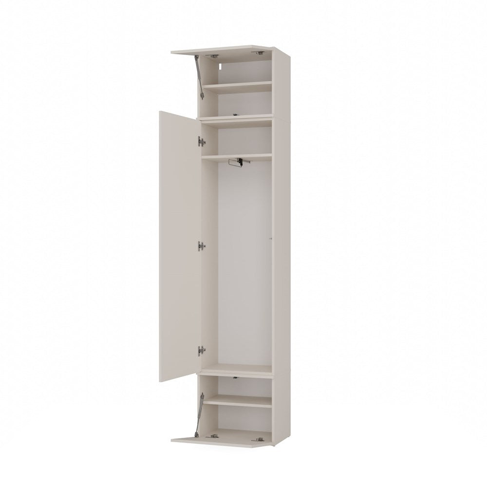 De HAGA 1SZ garderobekast uit de Den Haag-serie biedt de perfecte combinatie van elegant design en praktische indeling voor elke moderne hal. De stijlvolle kasjmierkleur, een rustige en elegante beige tint, past moeiteloos bij lichte muren, natuurlijk hout en loftaccessoires. Dankzij de compacte vorm en het modulaire ontwerp beschikt deze kast over drie functionele zones: een ruime onderkast, een royale hoofdkast voor bovenkleding en een bovenkast voor extra accessoires.