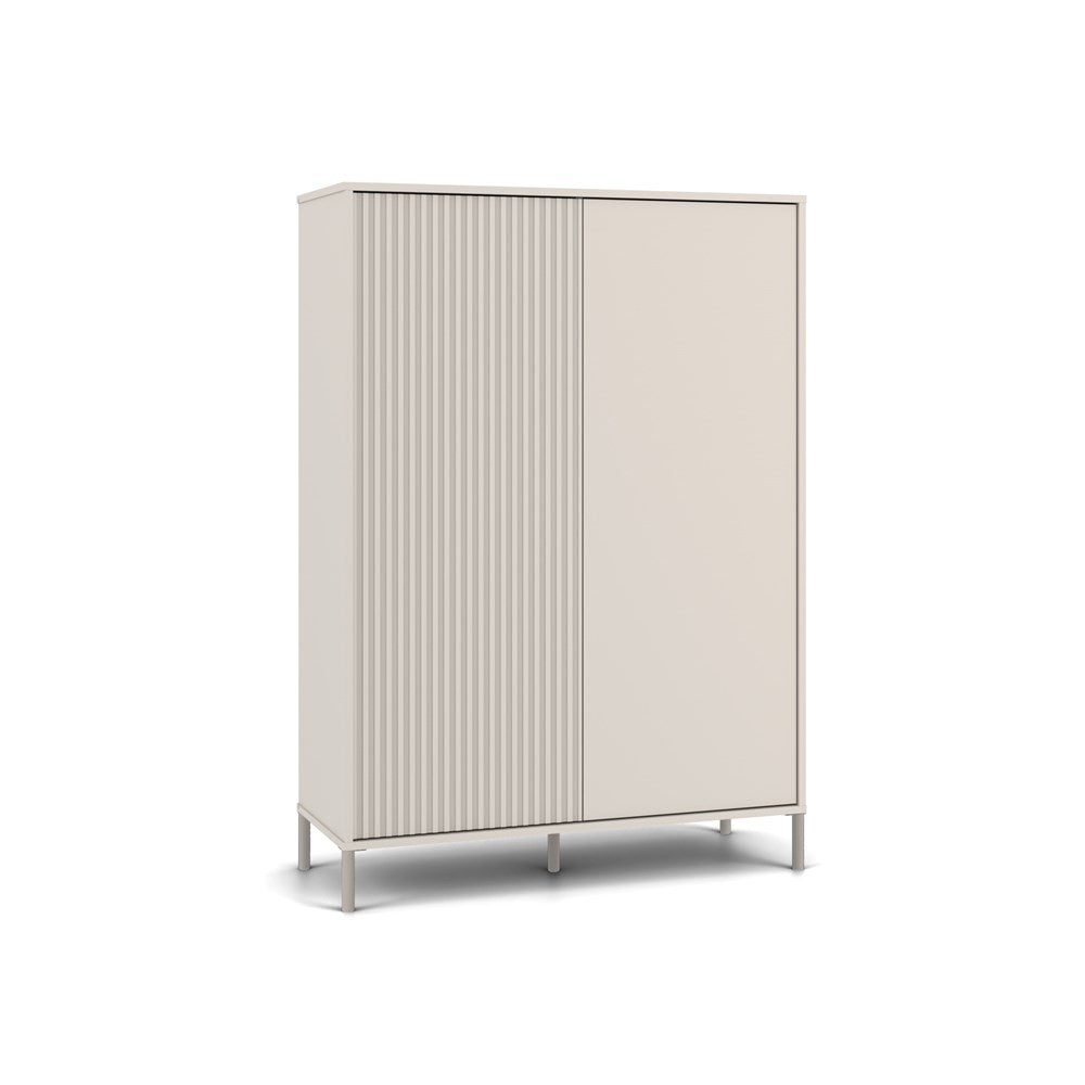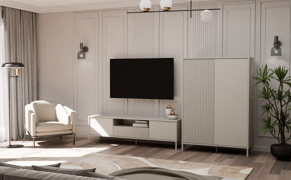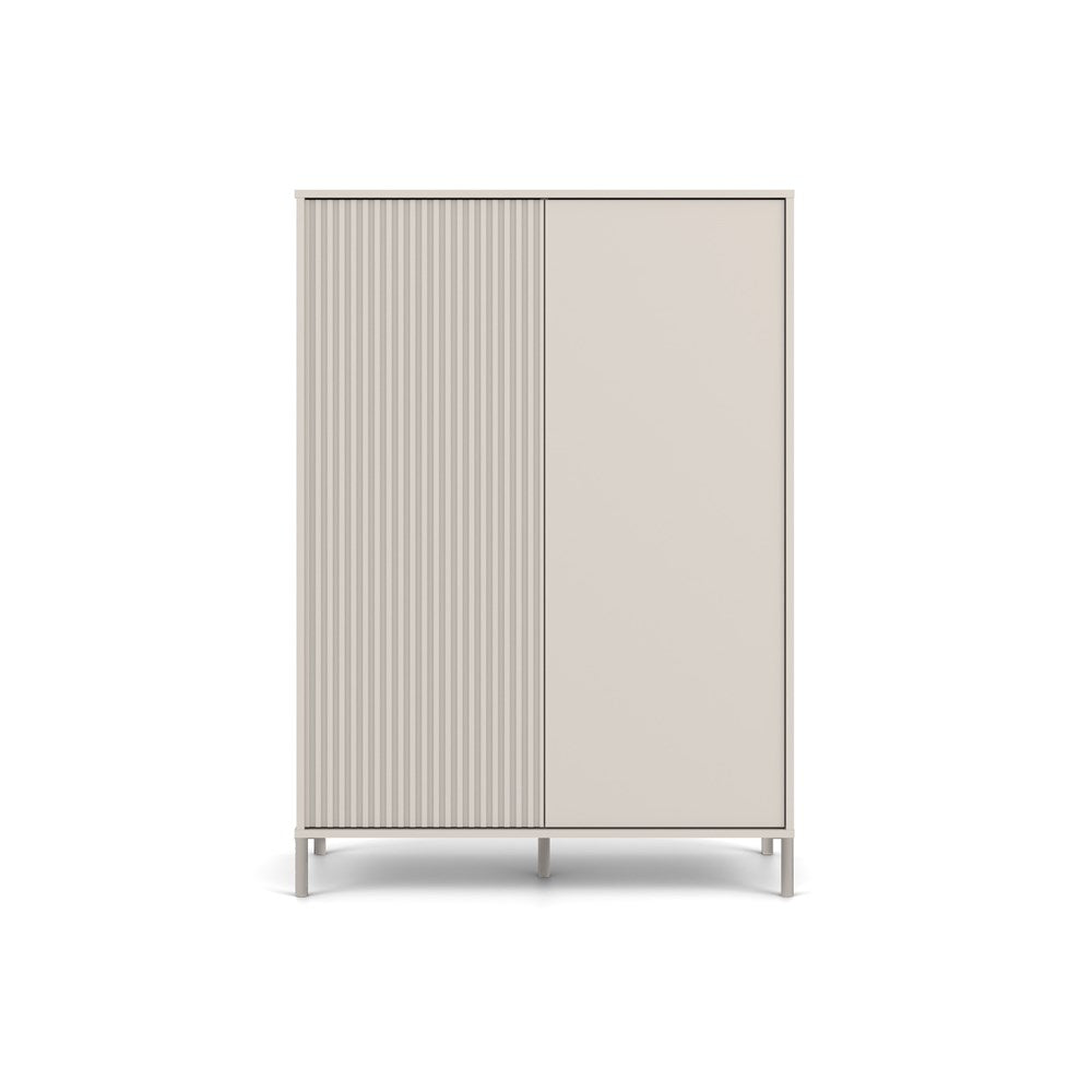 Ontdek de perfecte combinatie van esthetiek en functionaliteit met de KAMARO 2DD Slim/Smooth vitrinekast in een elegante kasjmier kleur. Deze moderne vitrinekast beschikt over twee lange deuren – één glad en één geribbeld – die een uniek, eigentijds karakter toevoegen aan ieder interieur. Het kliksysteem TIP-ON maakt openen en sluiten eenvoudig en stijlvol zonder handgrepen, terwijl de hoge metalen poten voor een lichte en luchtige uitstraling zorgen.
