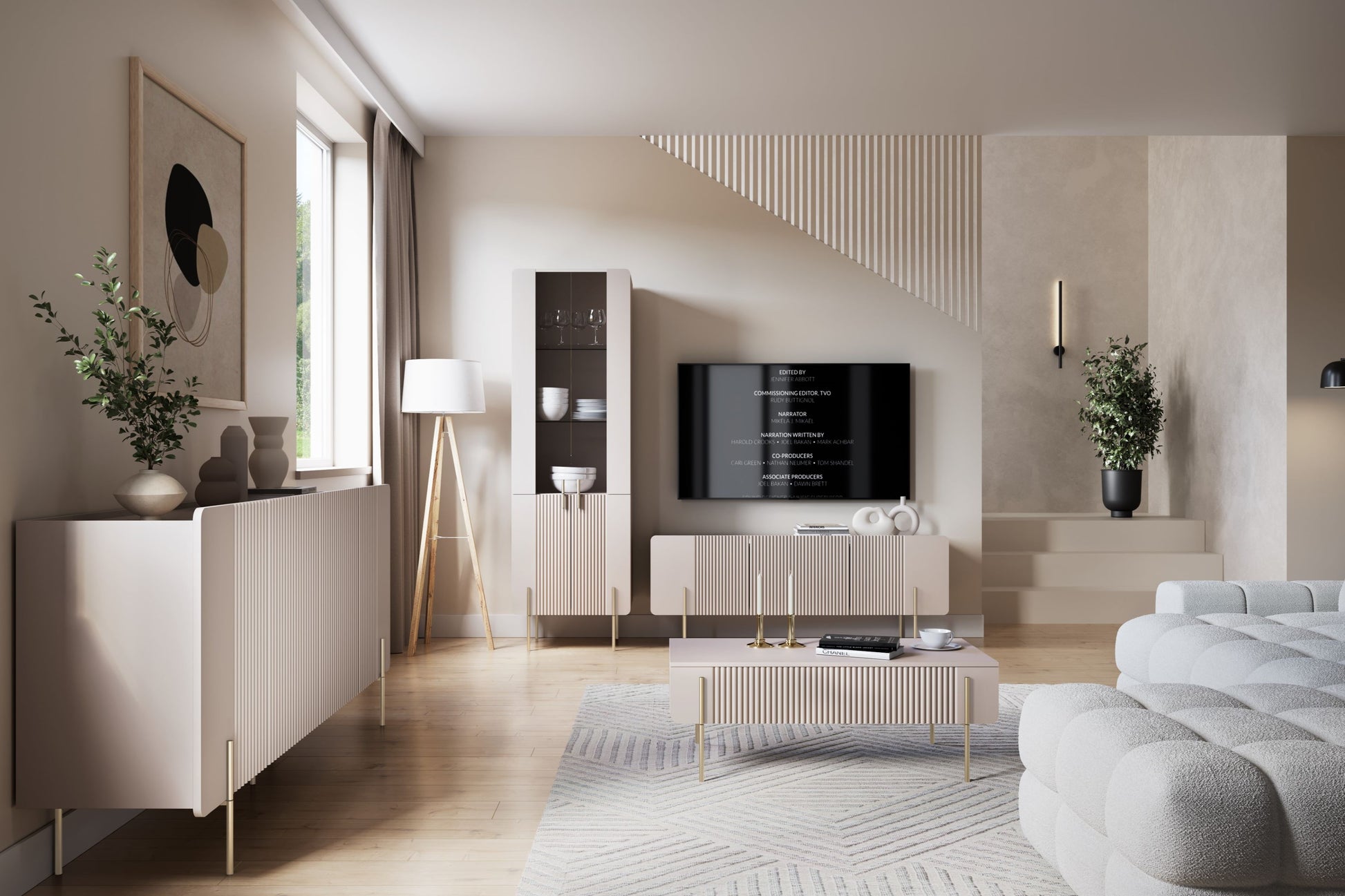 Malmi Salontafel met Laden - Moderne Kasjmier MDF & Gouden Metalen Poot | Kleur: Kasjmier