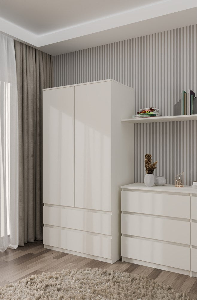 Malwa SS-90 dubbele deurkast met 2 lades en TIP-ON systeem | Kasjmier Beige | 180x90x50 cm