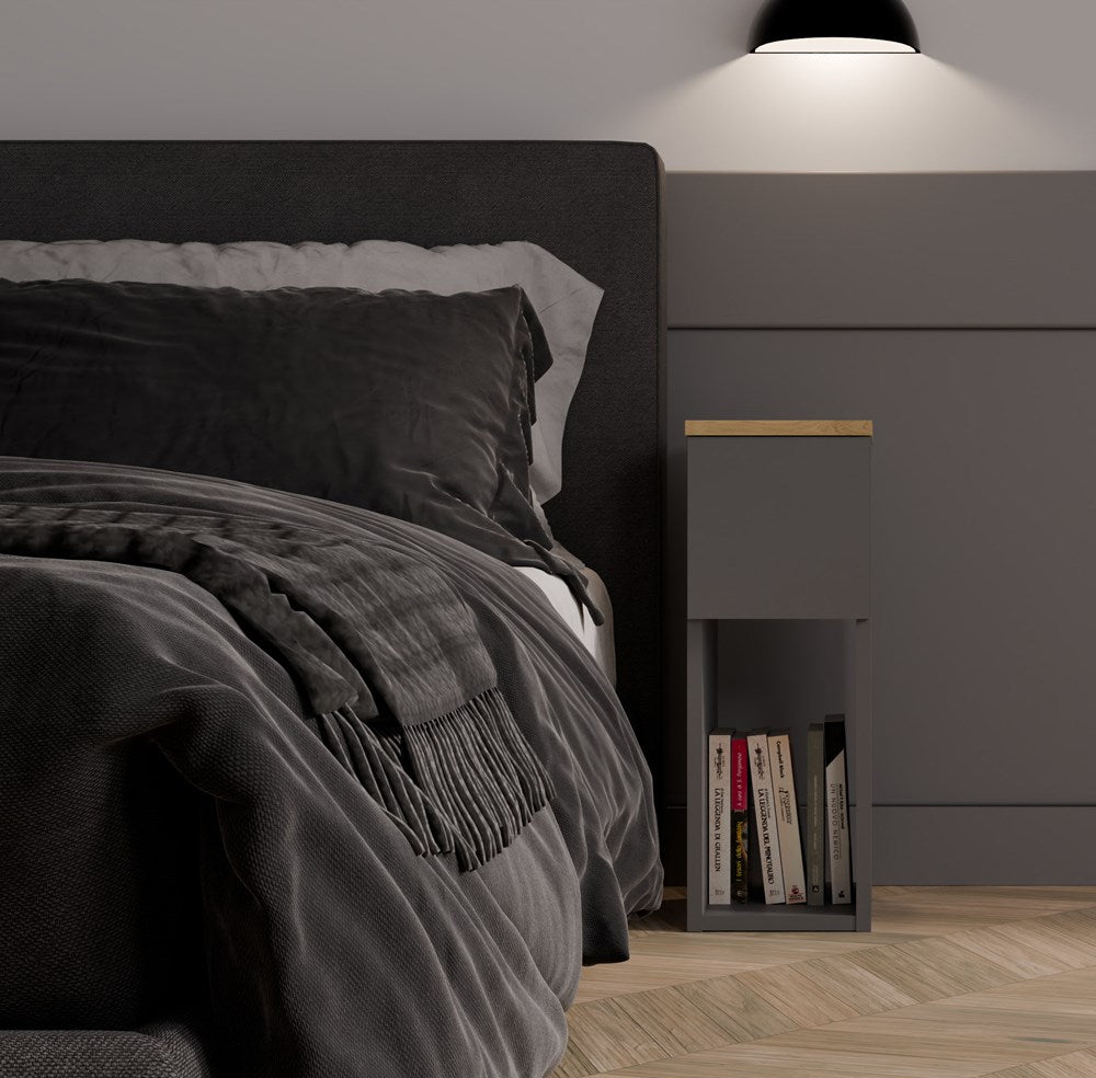 Modern GALAX 20 1S nachtkastje met lade - Compact bedkastje | Kleur: Antraciet & Eiken