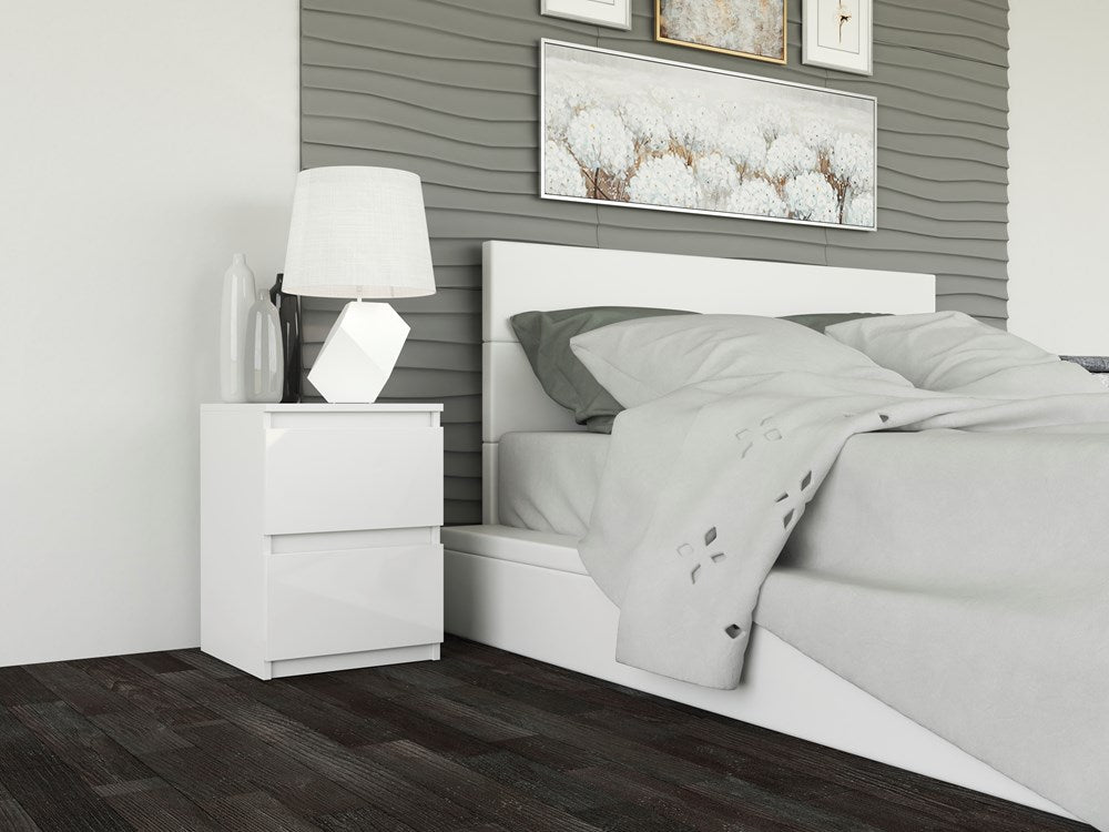 Modern Nachtkastje Malwa M2 met 2 Lades - Mat & Glanzend Wit | Kleur: Wit | Maat: 30x30x40 cm