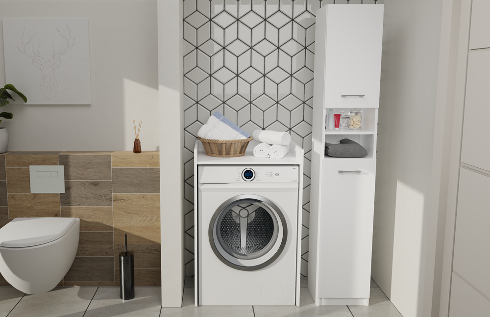 De MARBELA badkamerkast biedt tal van voordelen: het meubel is eenvoudig zelf te monteren aan de hand van de meegeleverde handleiding en vormt samen met Pola of Pola DD wasmachinekasten een perfecte badkamerset. Het onderhoud is eenvoudig: maak het oppervlak schoon met een zachte doek en vermijd agressieve schoonmaakmiddelen. Ideaal voor het netjes opbergen van handdoeken, verzorgingsproducten of schoonmaakmiddelen. De veelzijdigheid en het minimalistische ontwerp passen naadloos in zowel klassieke als moderne interieurs.