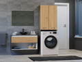 Moderne Badkamerkast Pola DD - Opbergruimte Boven Wasmachine | Antraciet / Artisan Eiken