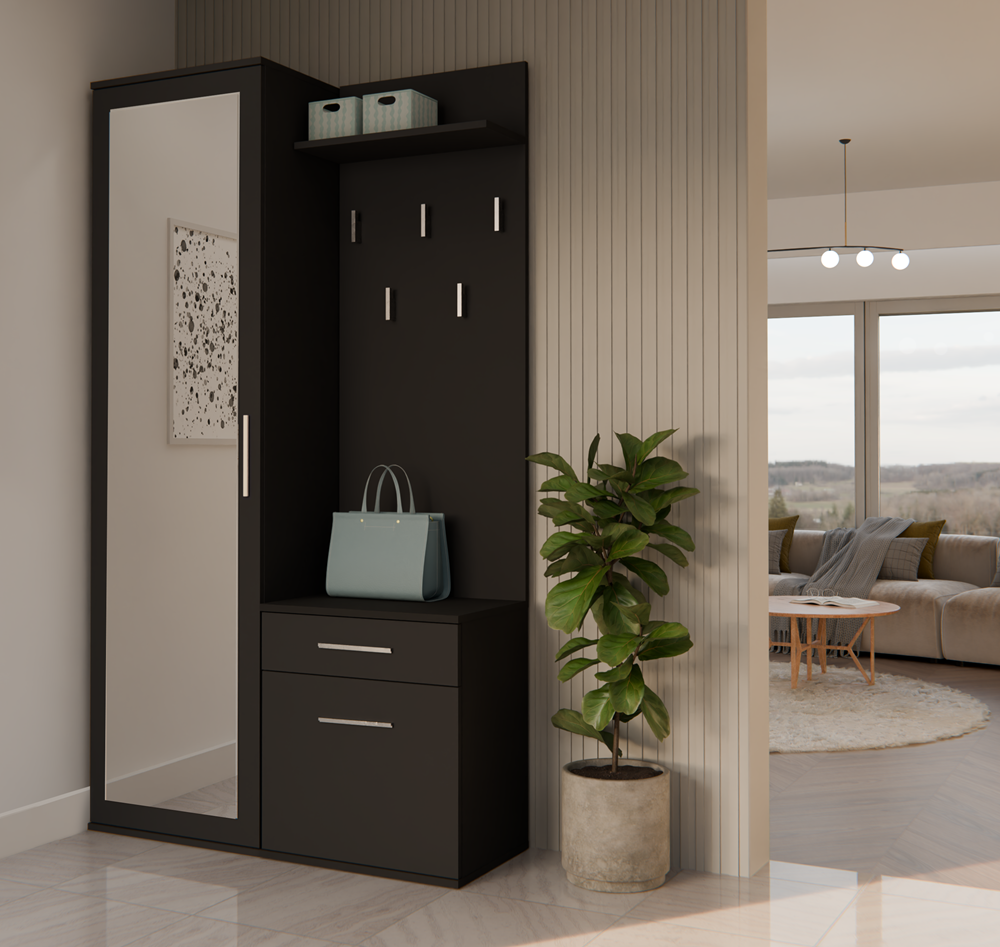 Moderne Garderobe "DUO" met Spiegel en Opbergruimte – Mat Zwart