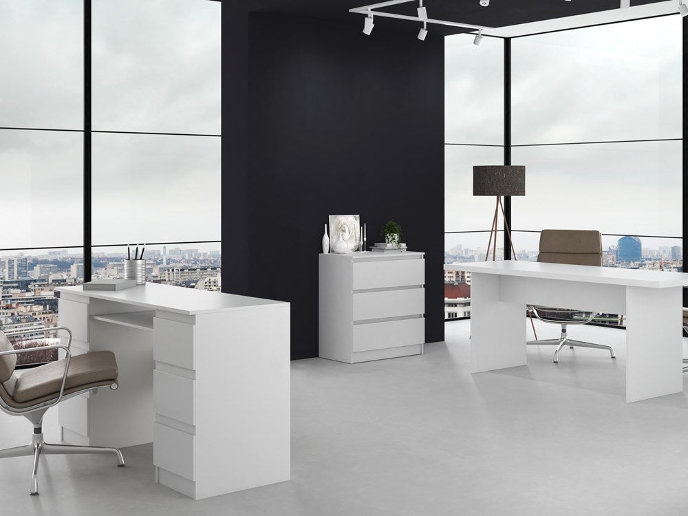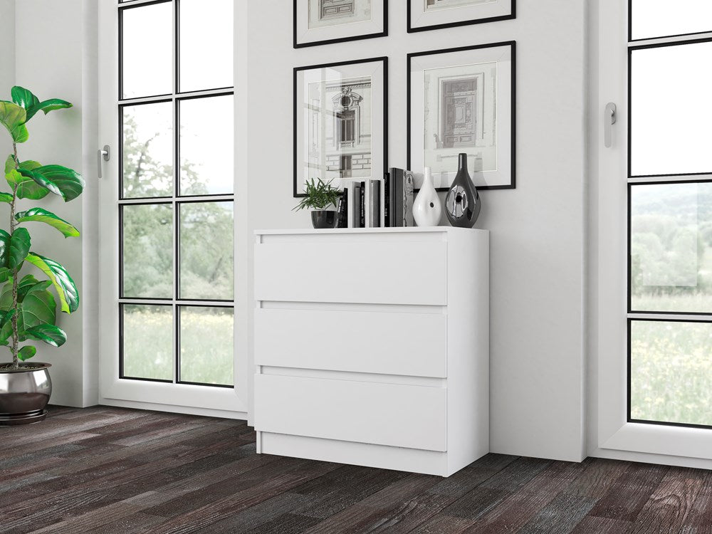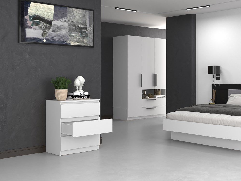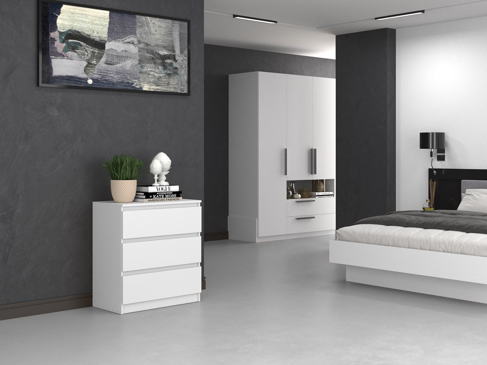 Moderne Grote Ladekast met 3 Lades – MALWA Serie, Mat Wit