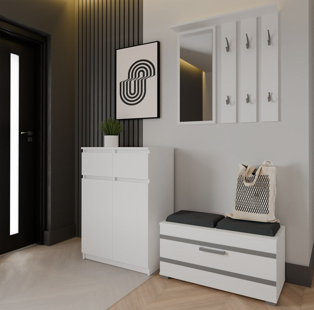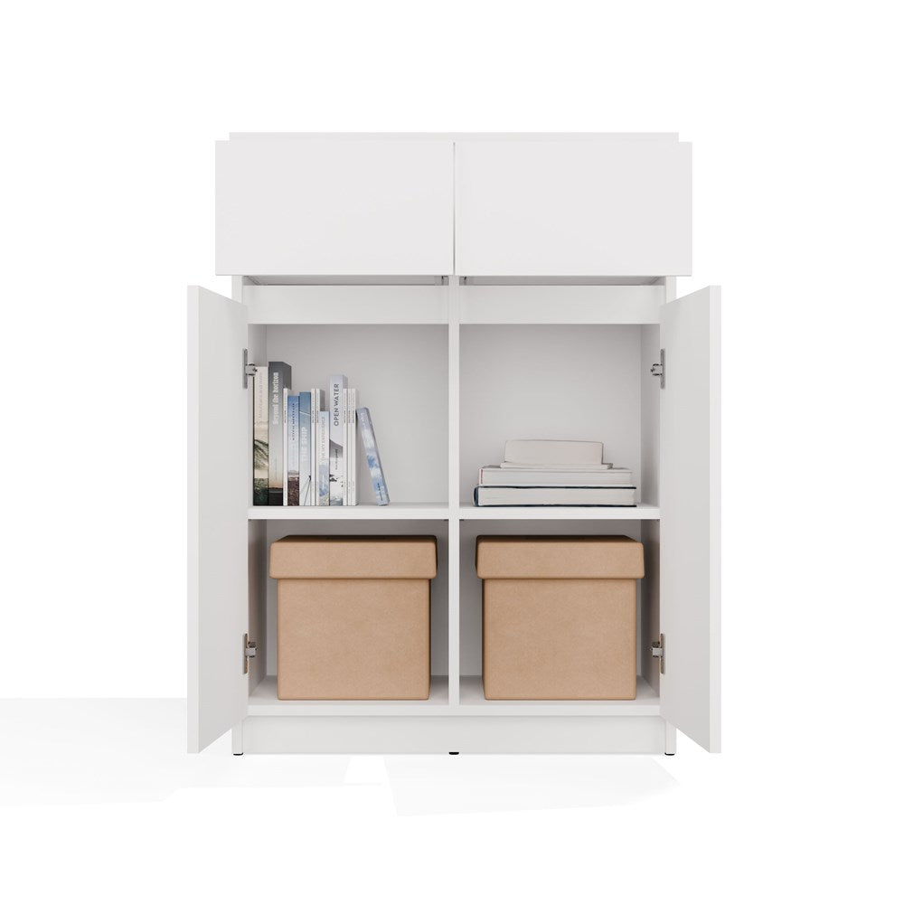 Moderne ladekast 2 deuren & 2 lades – Greeploos design | Kleur: Mat wit | Maat: 70x39,5x97 cm