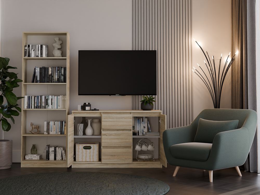Moderne Ladekast 2D3S Sonoma Eiken – 2 Deuren, 3 Laden, 120cm
