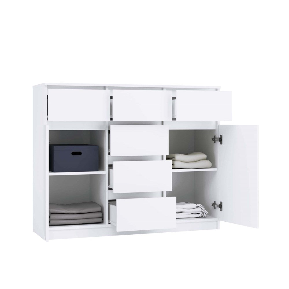Moderne ladekast 2 deuren 6 laden 120x40x96,5 cm | Kleur: Mat wit