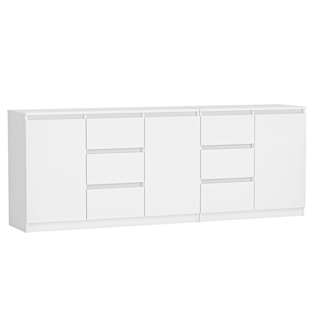 Moderne meubelset COSTA – 3 deuren, 6 lades, mat wit | Kleur: Mat Wit | Maat: 200x40x75 cm