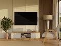 Moderne TV-kast Malwa - Ambachtelijk Eiken & Kasjmier | 140x40x36 cm