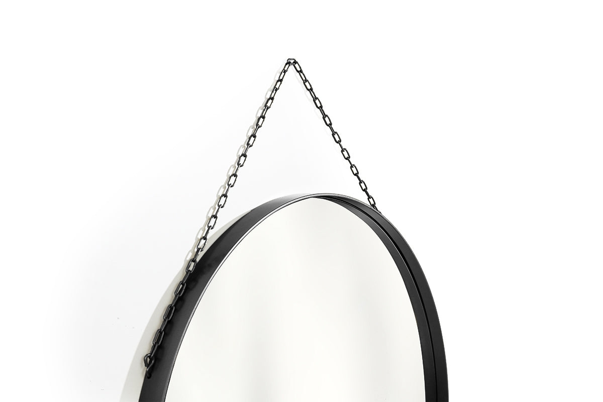 Ontdek de Nicole ronde spiegel van 80 cm met een stijlvol, zwart metalen frame. Dit moderne ontwerp combineert eenvoud met elegantie en past perfect in elke ruimte. De spiegel is vervaardigd uit hoogwaardige materialen, waardoor hij een luxe uitstraling én langdurige duurzaamheid biedt. De unieke gepoedercoate metalen ketting zorgt niet alleen voor een onderscheidende look, maar maakt ook het ophangen eenvoudig en origineel. Geef karakter aan uw badkamer, hal, slaapkamer of woonkamer met deze blikvanger die klasse en functionaliteit moeiteloos samenbrengt.