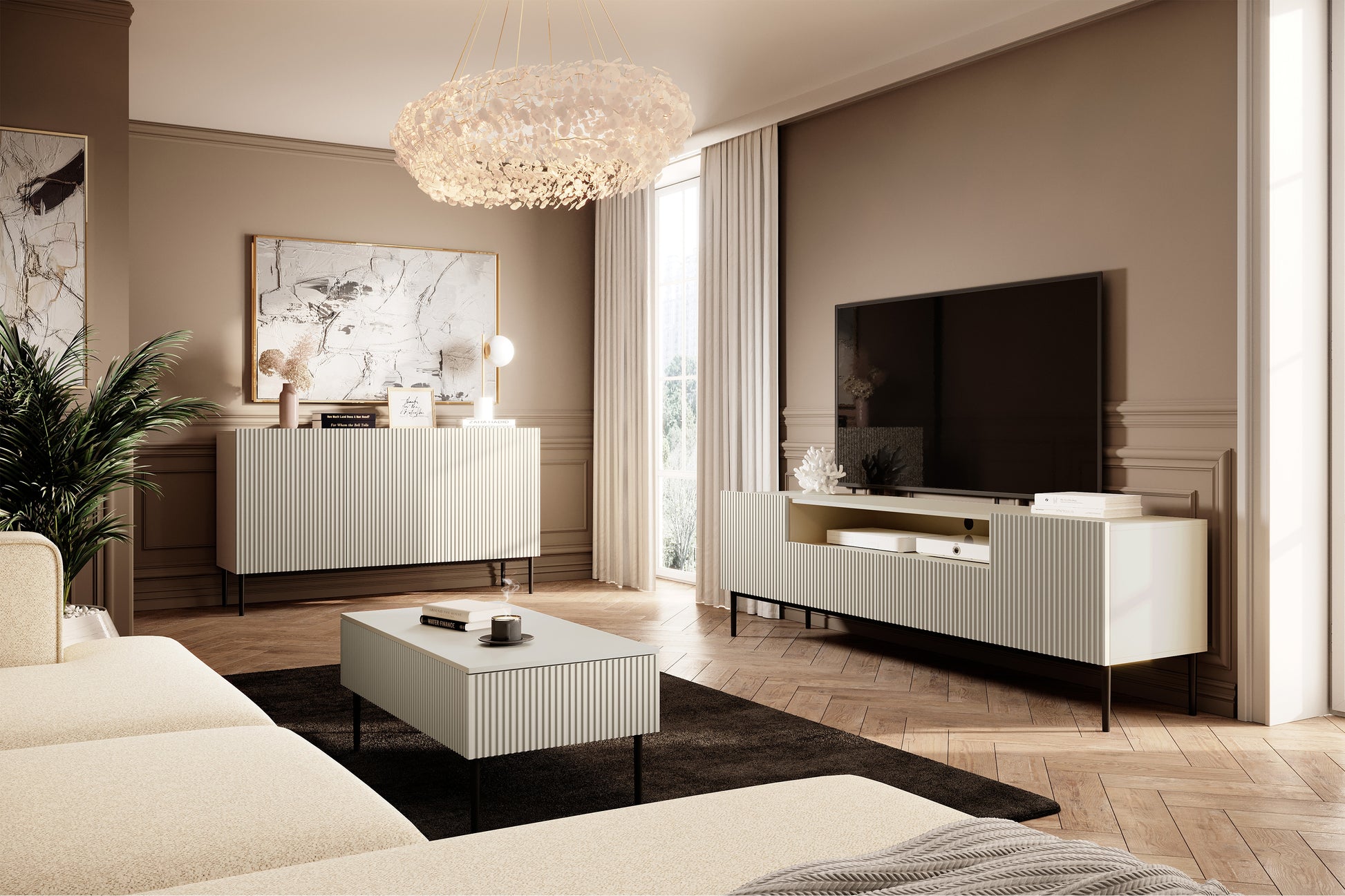 Geef uw interieur een moderne upgrade met de Nicole salontafel 120 cm in kasjmiertint, voorzien van stijlvolle, zwarte metalen poten. Deze salontafel combineert eigentijds design met ultiem gebruiksgemak dankzij het strakke MDF-oppervlak en de matte, elegante afwerking. De geïntegreerde soft-close lades bieden extra opbergruimte, ideaal voor afstandsbedieningen en tijdschriften, terwijl de robuuste metalen poten zorgen voor stabiliteit en een trendy uitstraling.