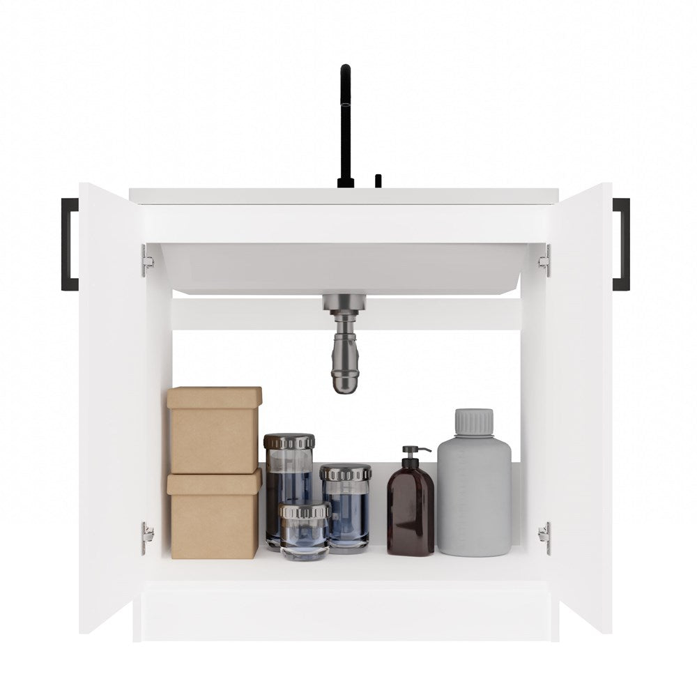 Onderkeukenkast Katia D-80 wit - 2-deurs met zwarte handgrepen | Kleur: Wit | Maat: 80x45,5x82 cm