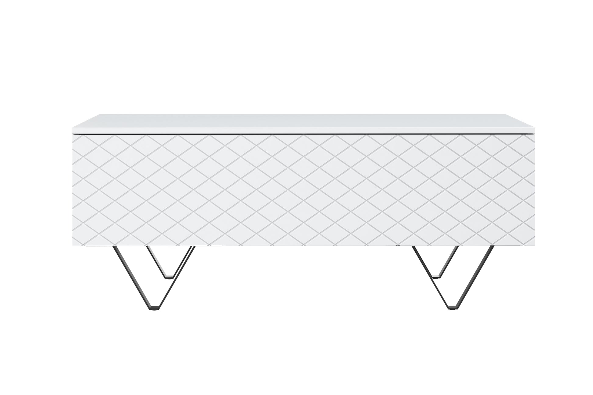 Scalia 120 2K Salontafel met Opberger - Mat Wit en Zwarte Poten | 120x48x55 cm