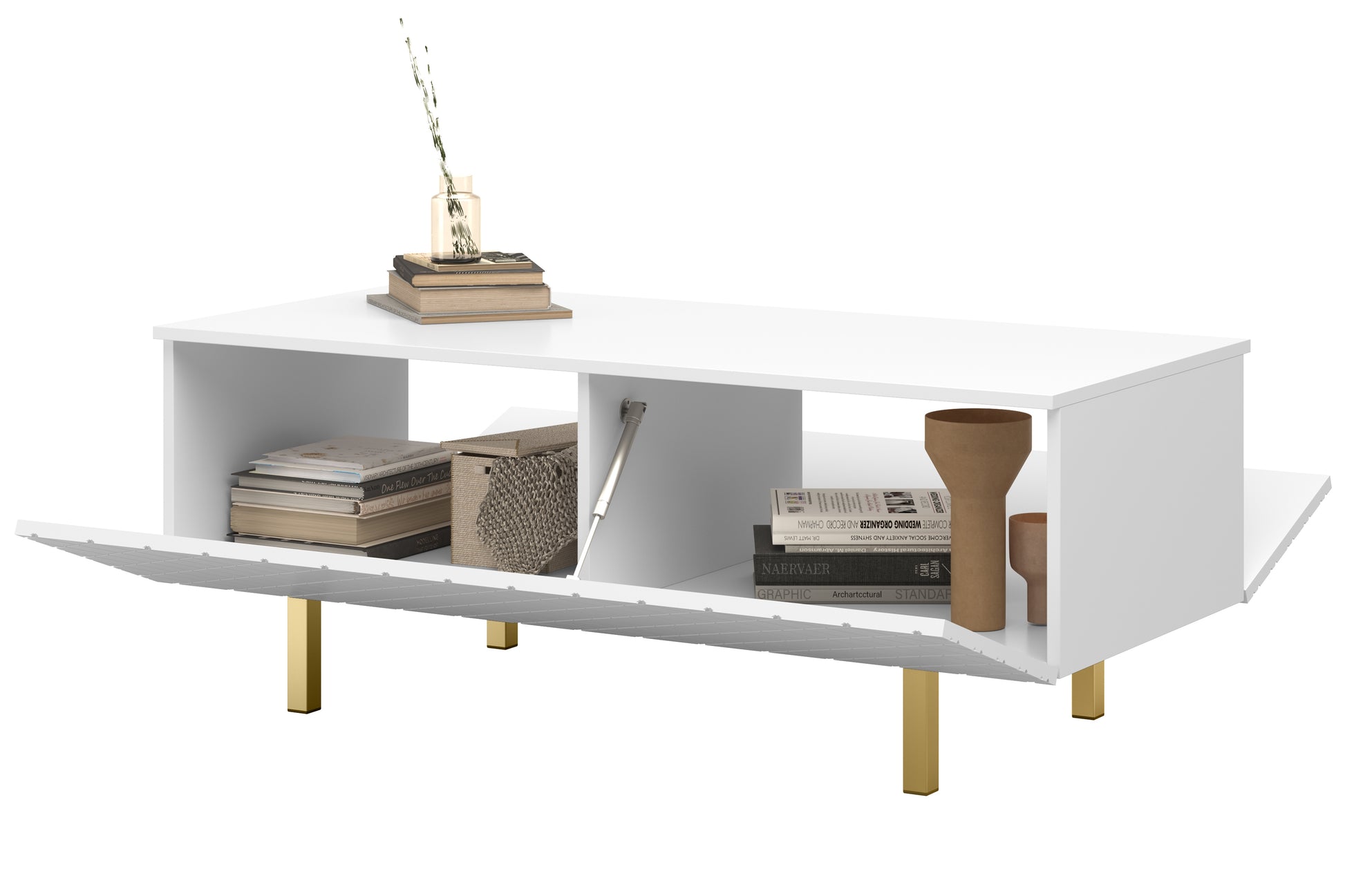 Scalia II 120 Salontafel met Opberger - Mat Wit & Gouden Poten | 120x46x55 cm