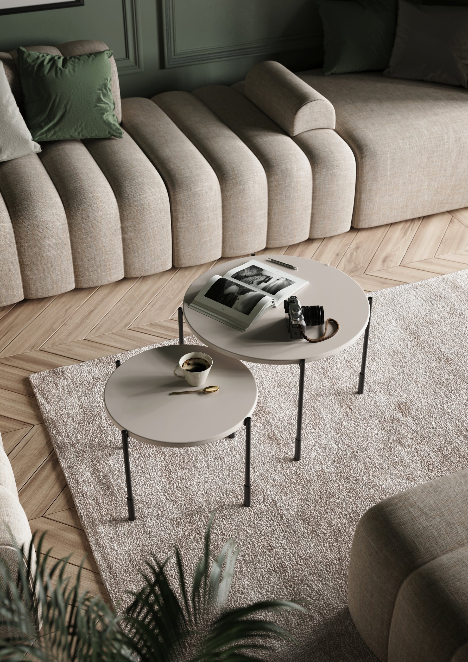 De Sonatia ronde salontafel van 60 cm combineert stijl en functionaliteit in elk modern interieur. Met zijn kasjmierkleurige tafelblad van 18 mm dik MDF en stoere, zwarte gepoedercoate metalen poten, ademt deze salontafel elegantie uit. De matte afwerking en esthetische ABS-randen zorgen voor een subtiele charme die past bij diverse interieurstijlen, van Scandinavisch tot industrieel. Dankzij het doordachte ontwerp geniet je van jarenlang gebruiksgemak en een praktische oppervlak voor al jouw koffiemomenten.