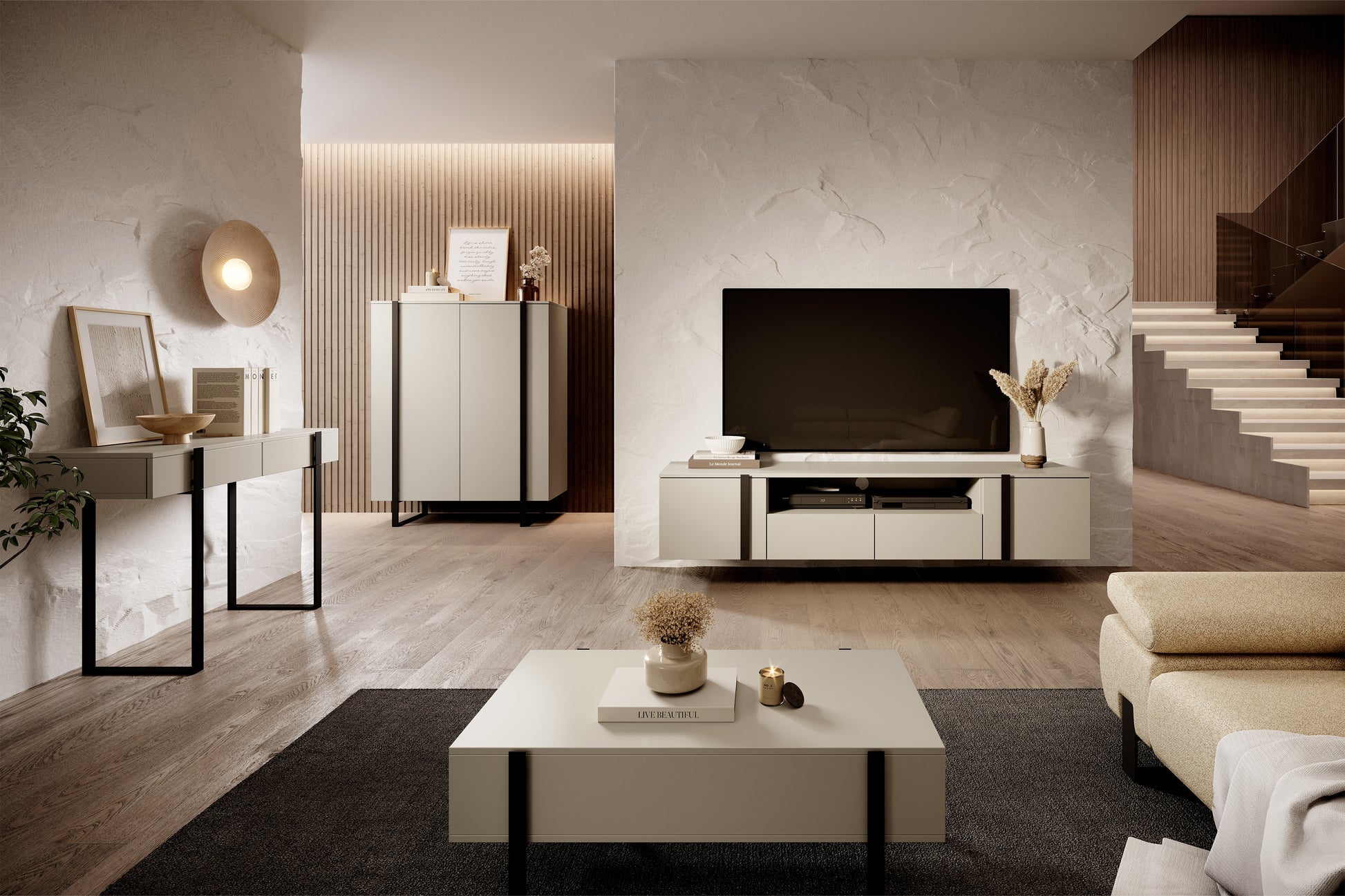 Verica Ladekast 120 cm met Metalen Poten – Kasjmier/Zwarte Poten