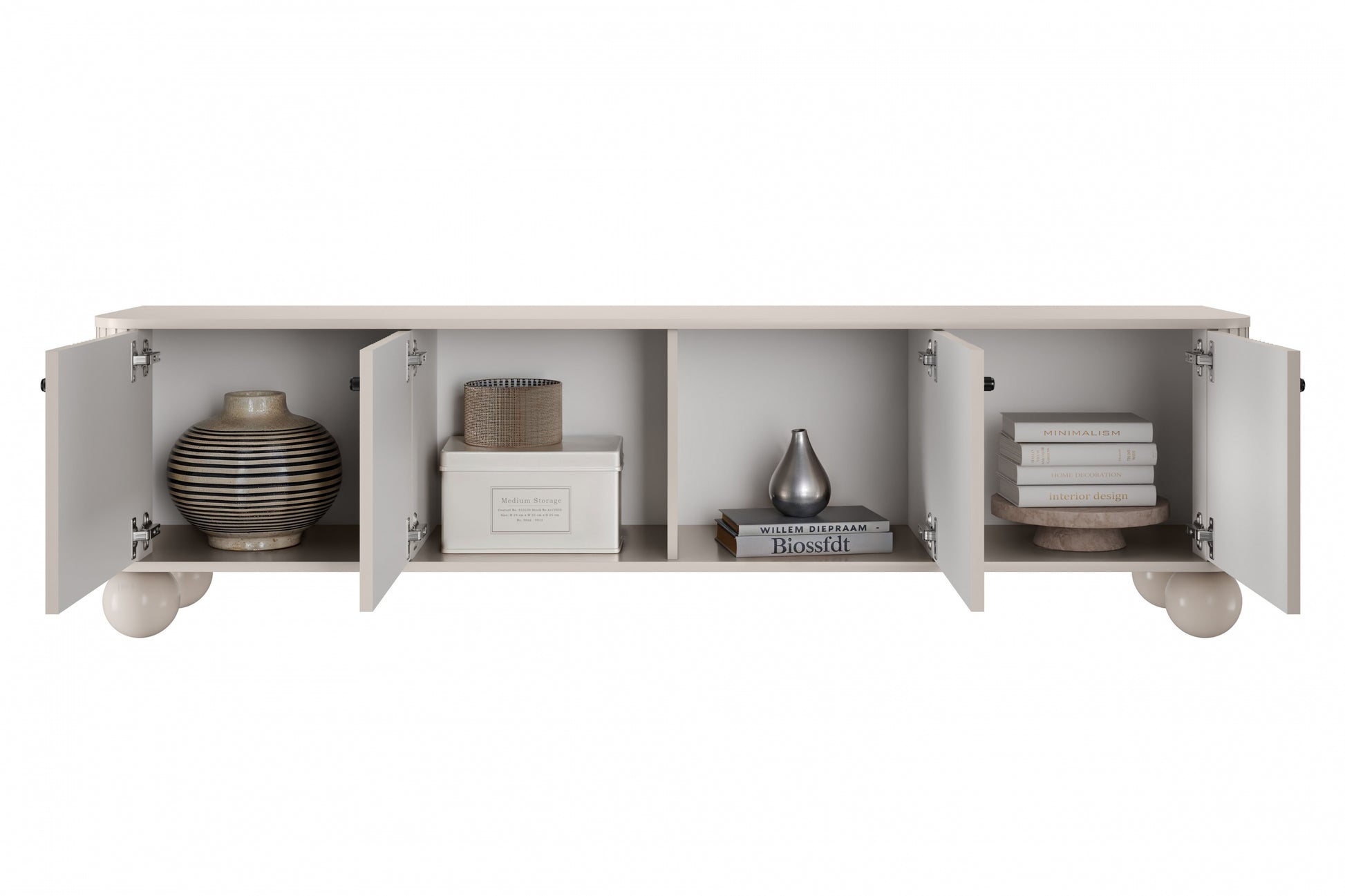 Vesper 4D TV-meubel 187 cm - Kasjmier met zwarte handgrepen en bolpoten | Kleur: Kasjmier