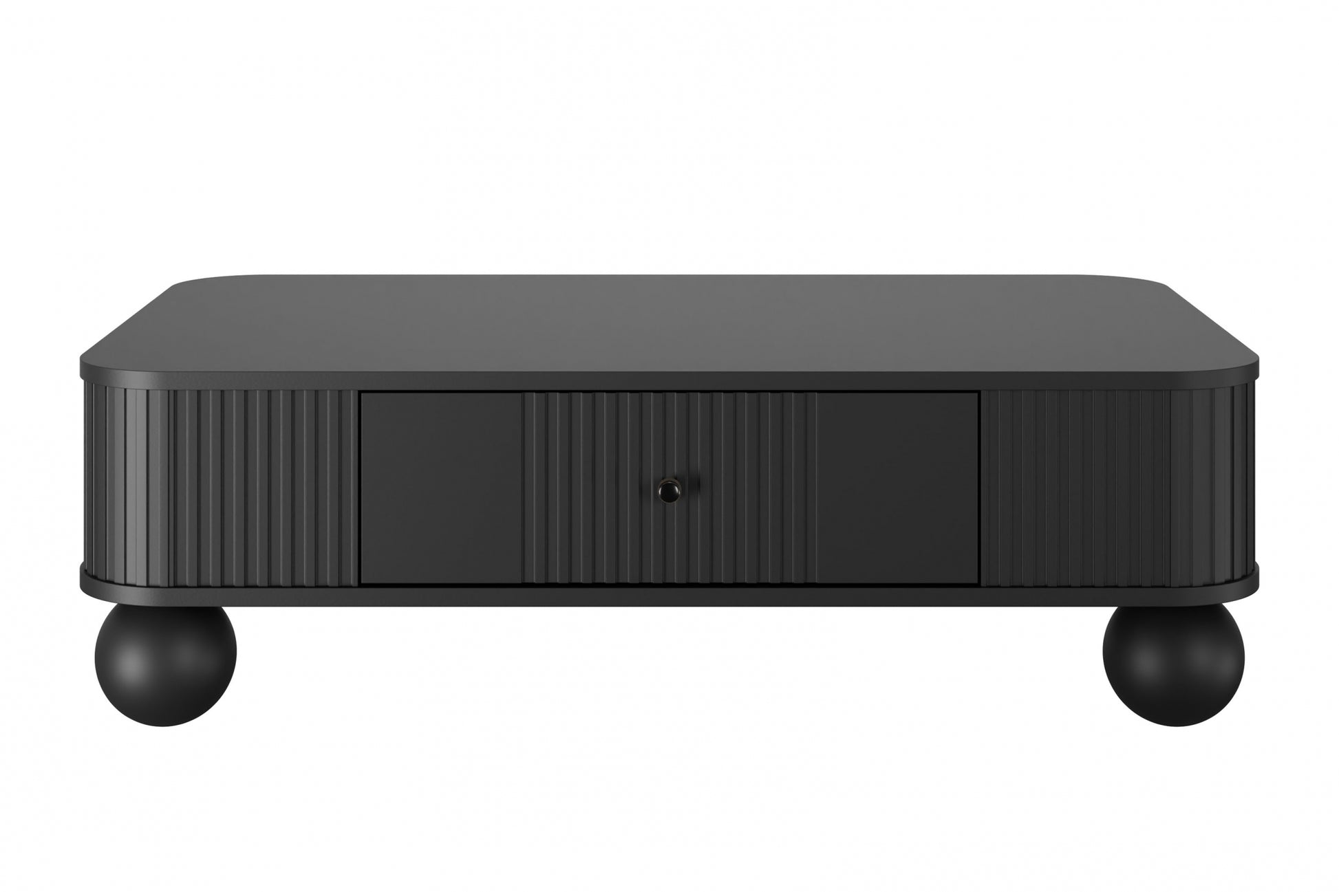 Vesper Salontafel met Lade 103x60 cm - Gegroefd MDF, Softclose, Bolpoten | Kleur: Zwart