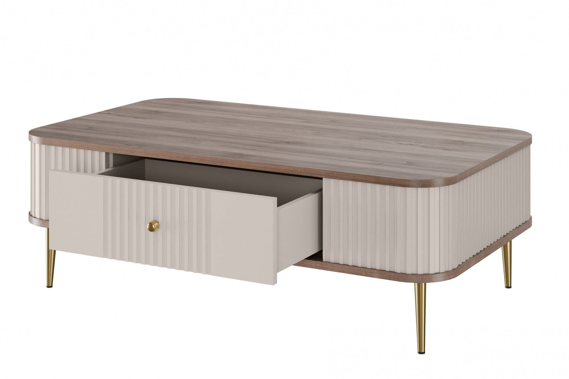 Vesper Salontafel met Lade - 103x60 cm | Kasjmier/Walnoot/Goud